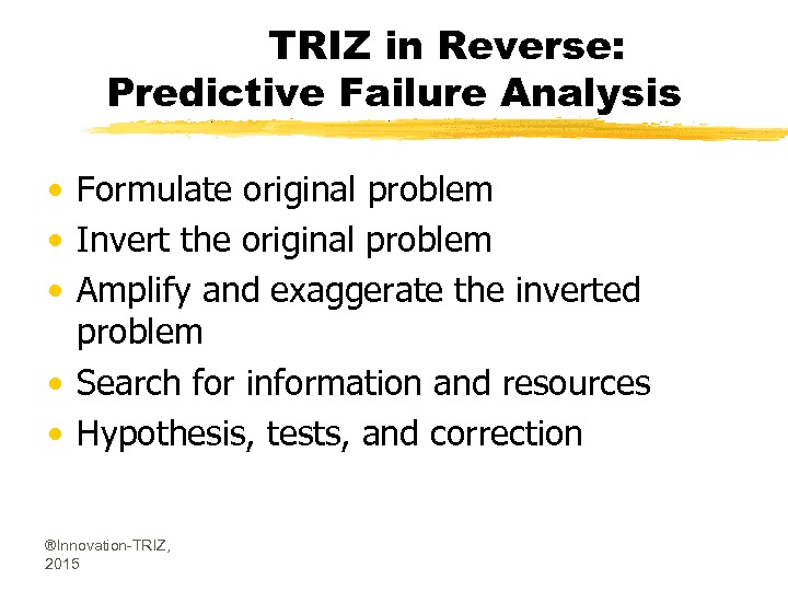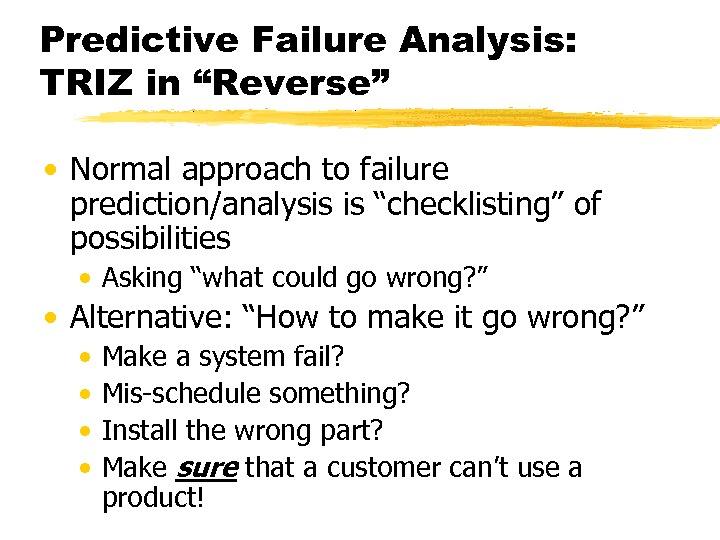 This webinar will review an alternative approach known as Predictive Failure Analysis or PFA. In this type of review, participants are asking the question "How can we make SURE the process (or system, product) NOT operate according to design?" This type of review always identifies more possibilities and requires no caffeine as participants are highly motivated to be saboteurs. This webinar will review the process and overview two case studies.