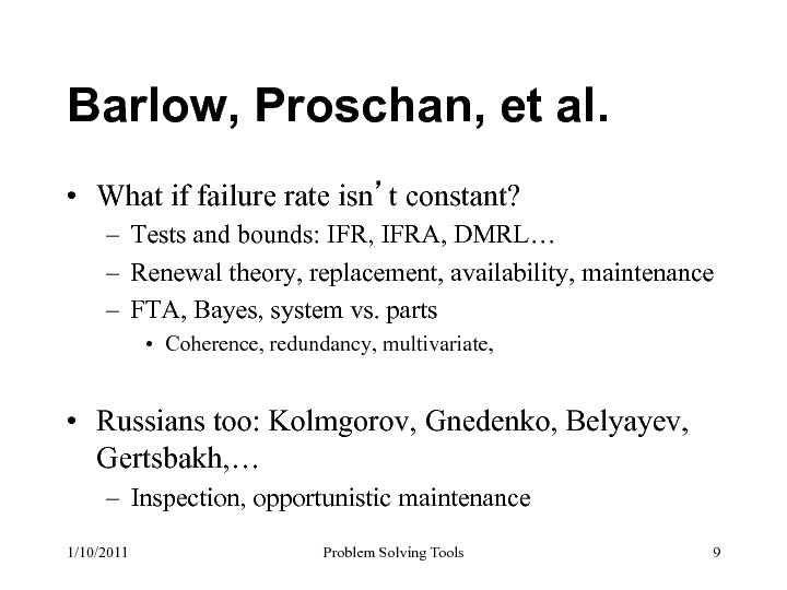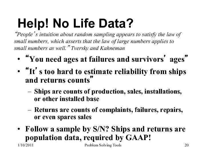 Are you interested in significant-other reliability developments (SOD) that have not been adopted? Combined with adopted developments, they constitute real reliability, just like the product of a complex number and its complex conjugate yields a real number. SOD includes nonparametric estimates of age-specific field reliability and failure rate functions (actuarial rates), without life data. These estimates deal with renewal processes, repairable processes, and missing data. SOD also quantify uncertainty, not just sample uncertainty. Privacy protection is afforded by not tracking products or people by serial number or name to obtain ages at failures and survivors ages. SOD may help employ reliability people and induce, governments, companies, and consumers to make decisions and compare products based on real reliability and risk.