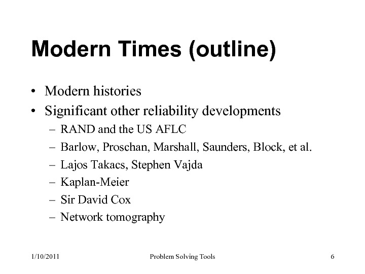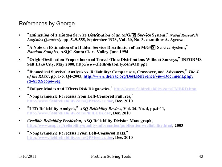 Larry is a cyclist, hiker, and oboist who still works on reliability statistics, even after 11 years of teaching, 11 years working for Lawrence Livermore Laboratory, and more than 20 years working in the real world. His motivations are to help and to improve the way things are done in reliability and biostatistics, using available knowledge.