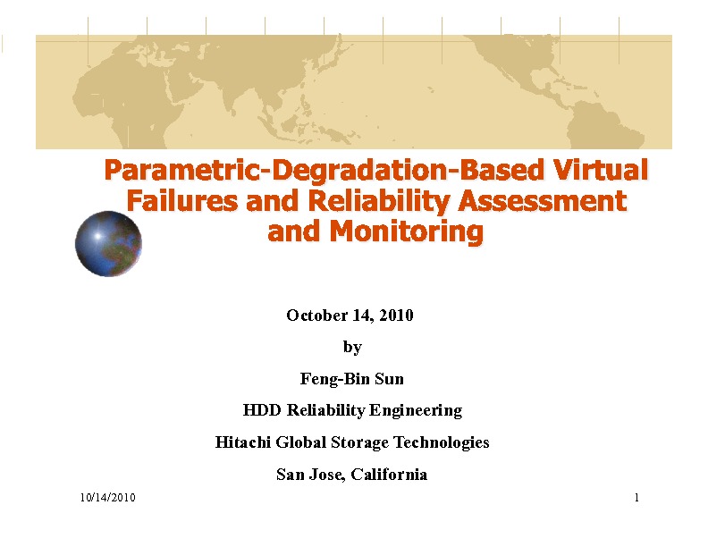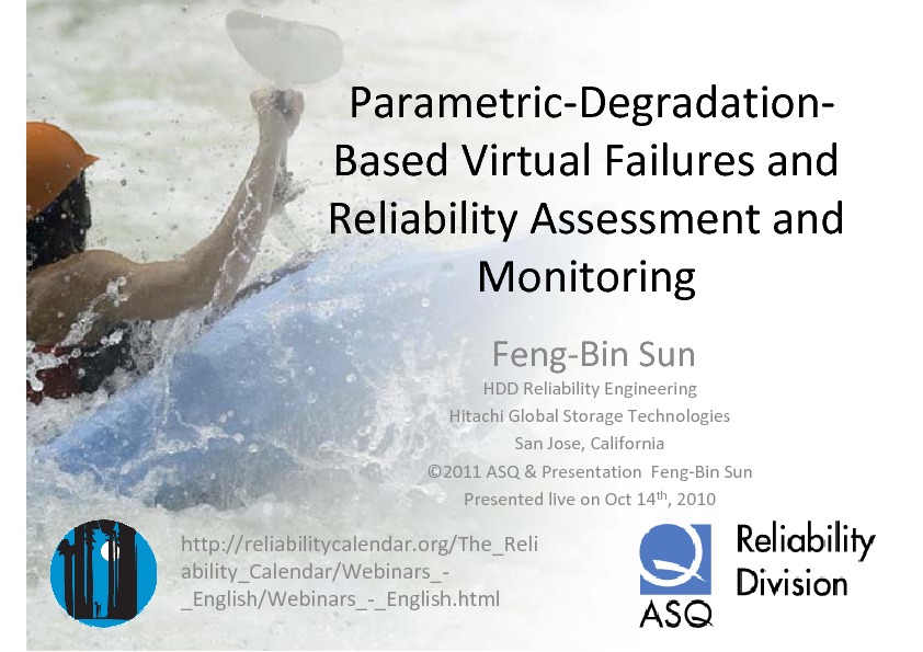 Dr. Feng-Bin (Frank) Sun is currently a Reliability Engineering Technologist at Hitachi Global Storage Technologies (HGST). Prior to joining HGST, he had more than 23 years of working experience in both academia and industry. He published two books, both by Prentice Hall, and near 30 papers in various areas of reliability, maintainability and quality engineering. His expertise and interests includ...read more